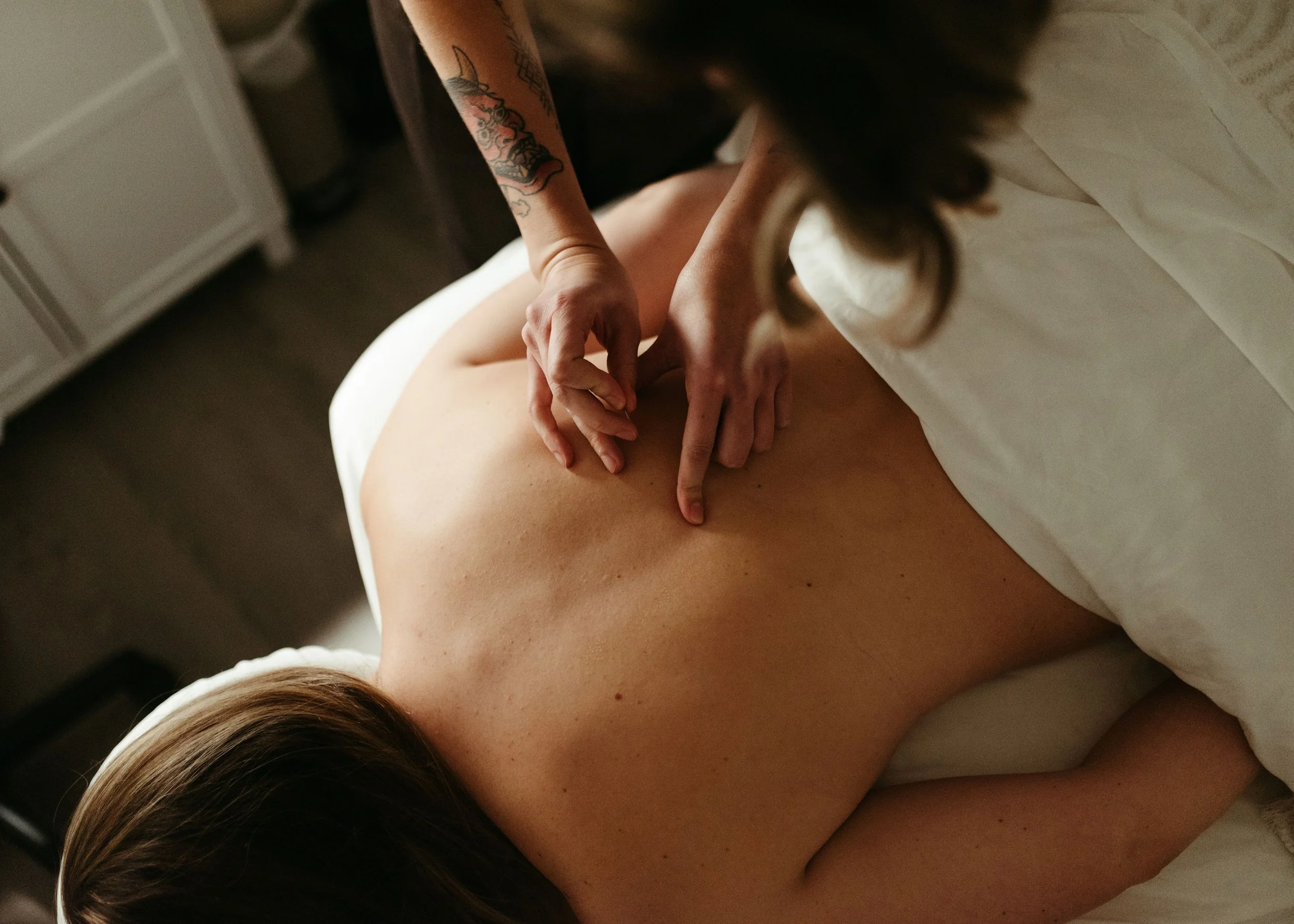 During your session, very fine, sterile needles are gently placed in both the face and the body. These create tiny, controlled micro-stimulations in the skin—encouraging blood flow and signaling your body to send healing resources like collagen and elastin to targeted areas.
